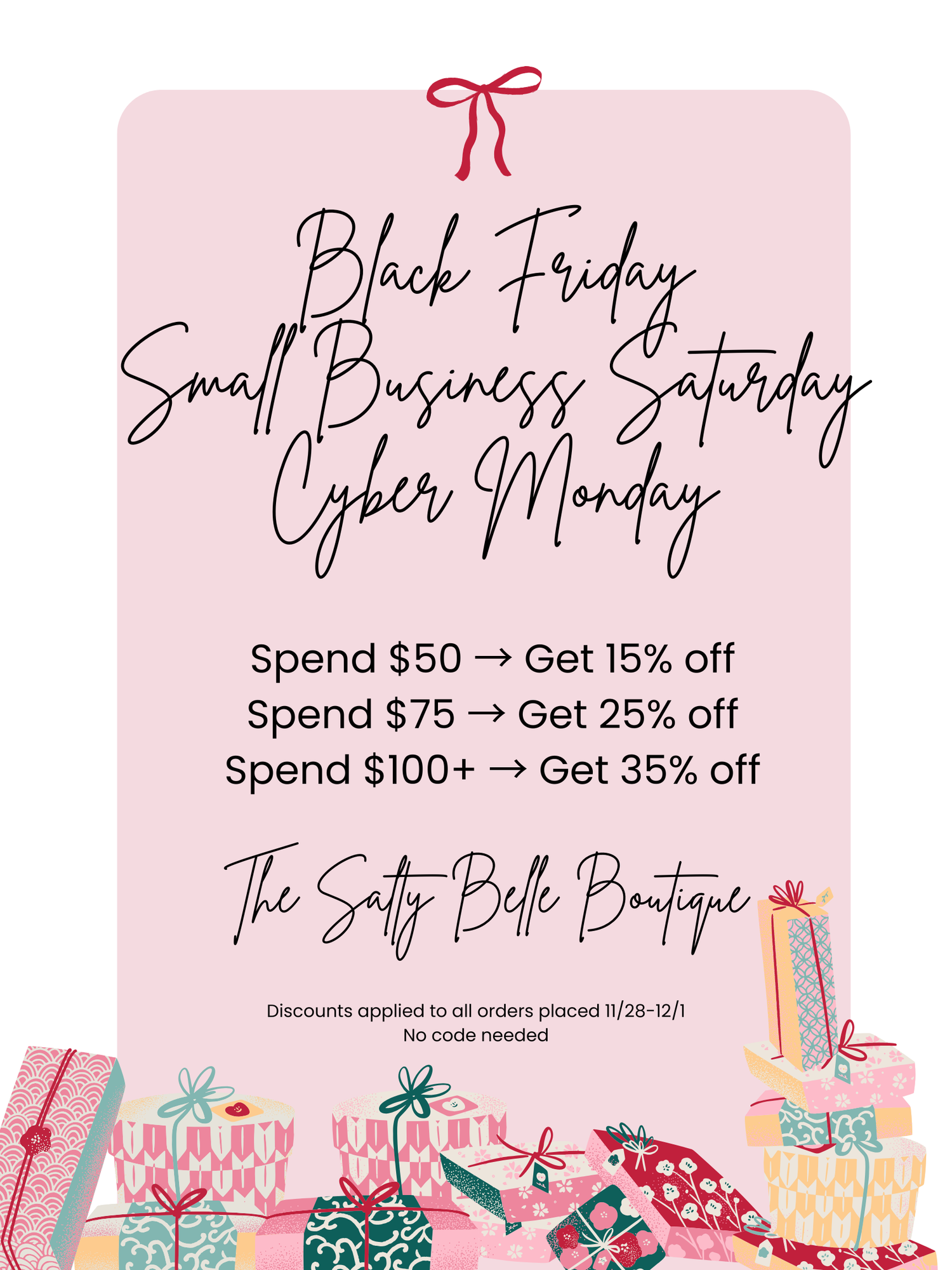 As a mom of 3 boys with a life-long dream of owning a boutique, Amber strives to make sure you have the service worthy of a Southern (or Salty) Belle.